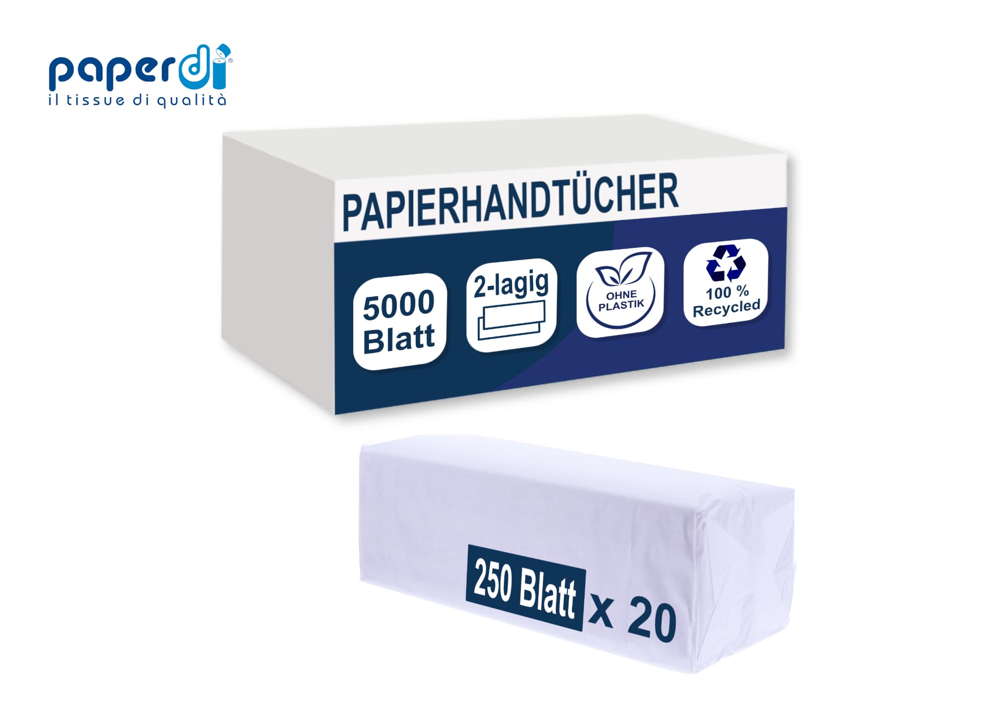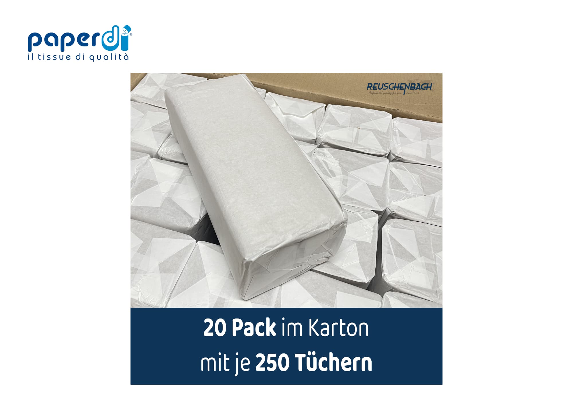 • Menge: 5000 Blatt (20 Päckchen à 250 Tücher)